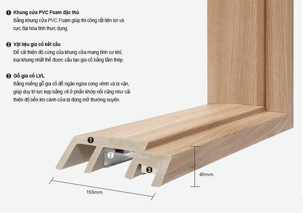 – Lõi LVL giúp cửa chắc chắn hơn, chống cong vênh, vặn vẹo, mất hình dáng ban đầu của cửa theo thời gian sử dụng.