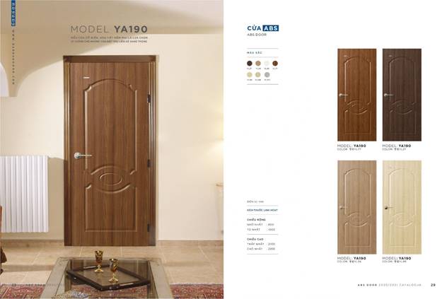 Cửa ABS là dòng cửa nhựa Hàn Quốc với hơn 200 mẫu độc quyền, có khả năng chịu nước 100%, không mối mọt, cong vênh, co ngót, trông như gỗ tự nhiên thật, chống cháy, cách âm, cách nhiệt nhờ lõi honey-comb. Cua ABS phù hợp làm cửa thông phòng, cửa nhà vệ sinh, cửa phòng tắm,… cho căn hộ, chung cư, nhà phố, văn phòng.
